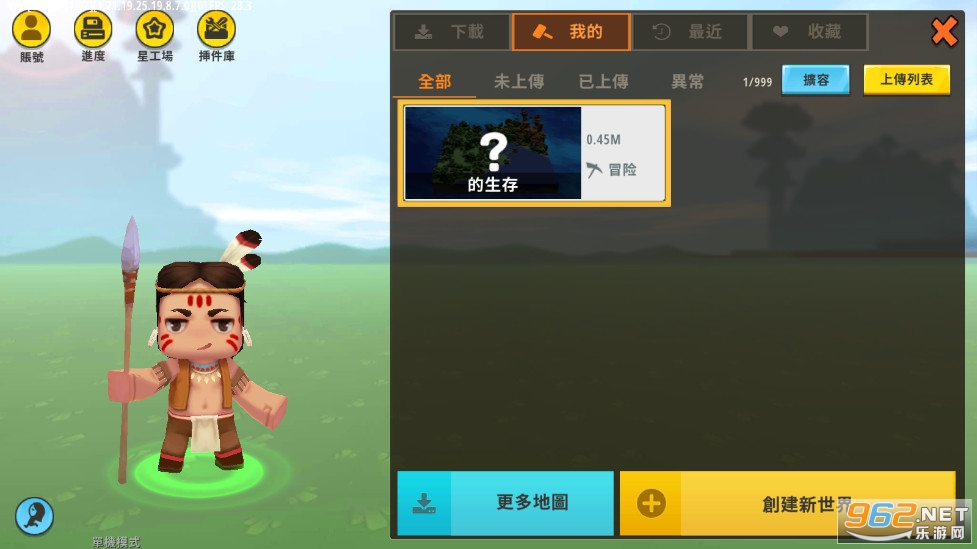 你可以进入自己创建/下载的地图,还有创建新世界,插件、地图上传等功能。