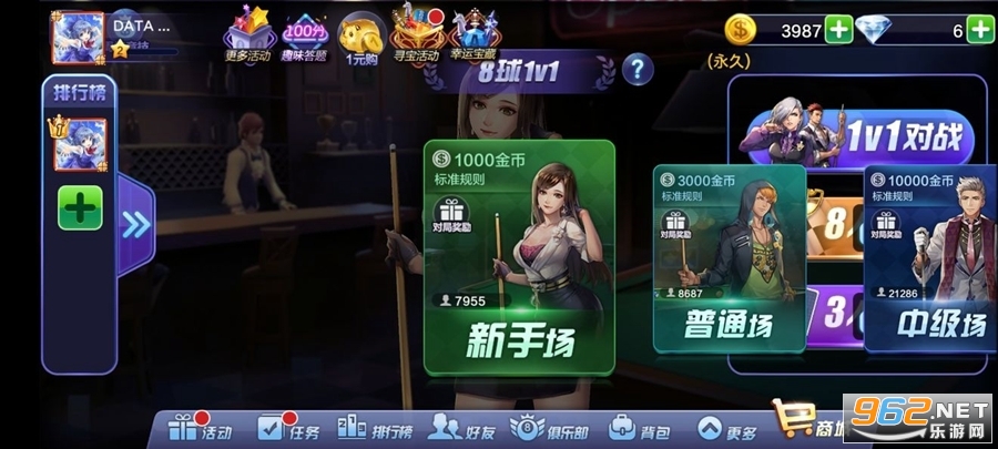 《腾讯桌球》游戏设有1V1匹配、3人欢乐场、8人锦标赛、斯诺克等玩法,玩家可以自由选择参与,并用自己精湛的技巧来获得丰厚的奖金。