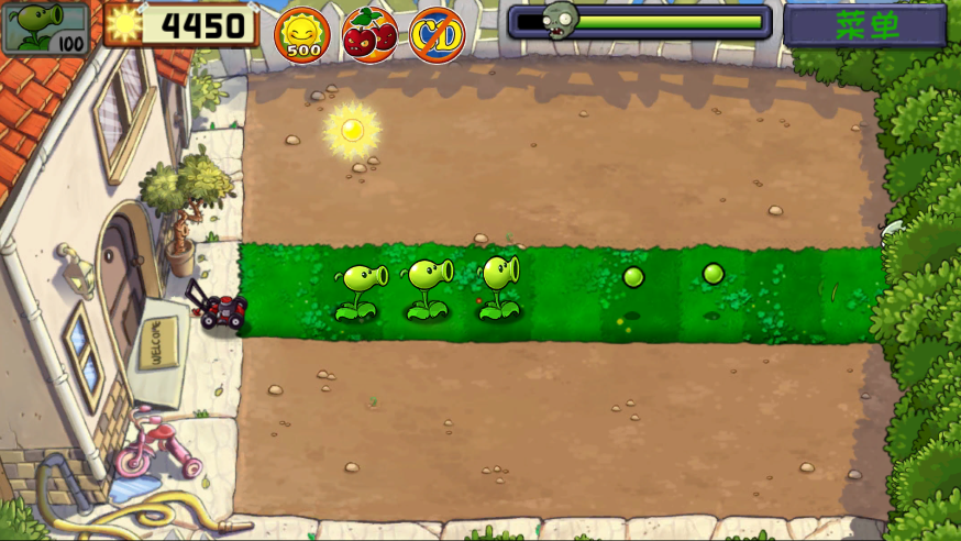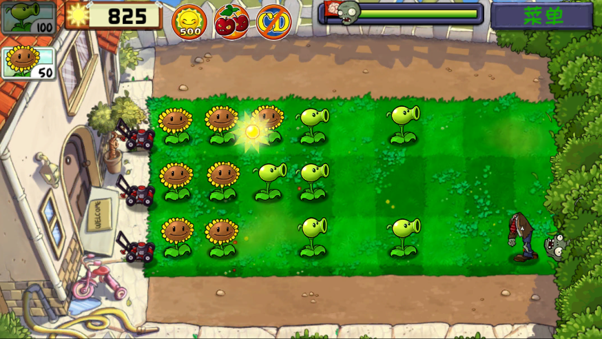 收集阳光,种植各种技能的植物,阻挡僵尸进攻