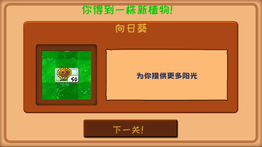 完成任务,解锁新植物,进入下一关