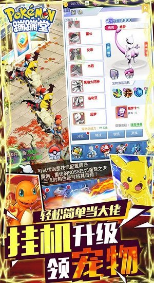 蹦蹦堂变态版是一款根据神奇宝贝改编而成的手机游戏,还原影视经典,给您在游戏上全新的体验,各种神奇宝贝这里都有,您可以收集他们,让他们为您战斗,回顾经典,进化,竞技,精灵技能这里都有,游戏画面清晰,快来下载吧!
