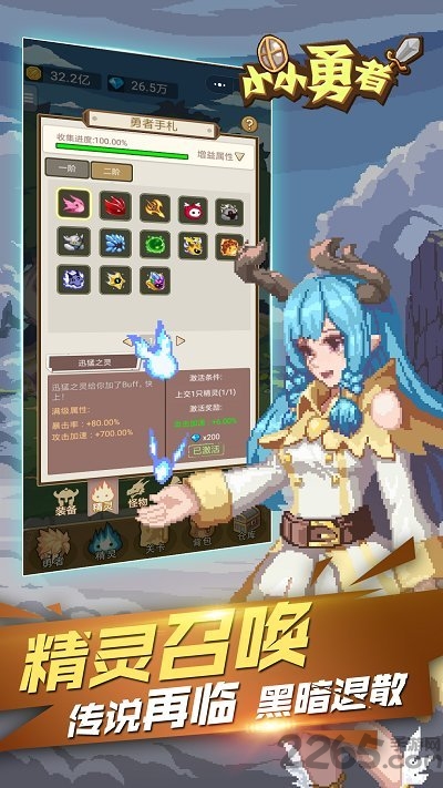 30个精灵可辅助勇者,更有超百件的装备可进行随心搭配,叠加攻击和防御能力。只要你想,超过20个佣兵、你就可以打造出专属于你的特色军团