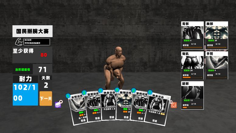 4、右侧分别是不同区域的肌肉数量,每张卡牌可以增加的肌肉数量是不同的。