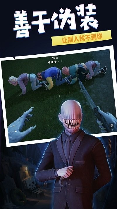 画风十分惊悚恐怖的自由实时躲猫猫生存对抗类游戏,可以将所有的伙伴分为两个不同的阵营,你们都将会为了实现自己的目标而努力,你会持续面临不同的危机,解决所有的困难,完成华丽的解谜操作,一旦完成任务就能够得到许多奖励哦。