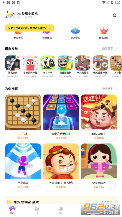 vivo中心秒开小游戏中心有超多的小游戏资源,这款手机软件内的小游戏不但全是用心选择出去的精典,并且当游戏玩家们要想消磨时光游戏娱乐一下得话还不用免费下载就可以直接进入,真是不必太爽,下载安装中随时开局各种各样趣味性小游戏。