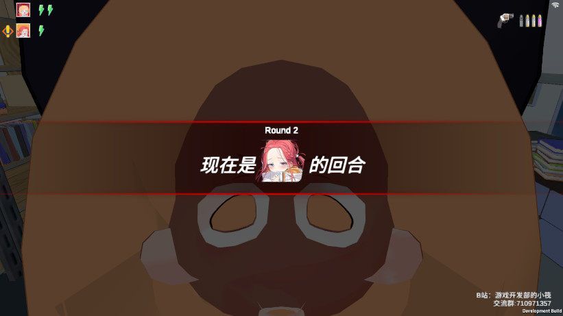 3、来到你的回合会有提示,选择对其他玩家开枪或是跳过,值得注意的是开枪可能出现空包子弹的情况。