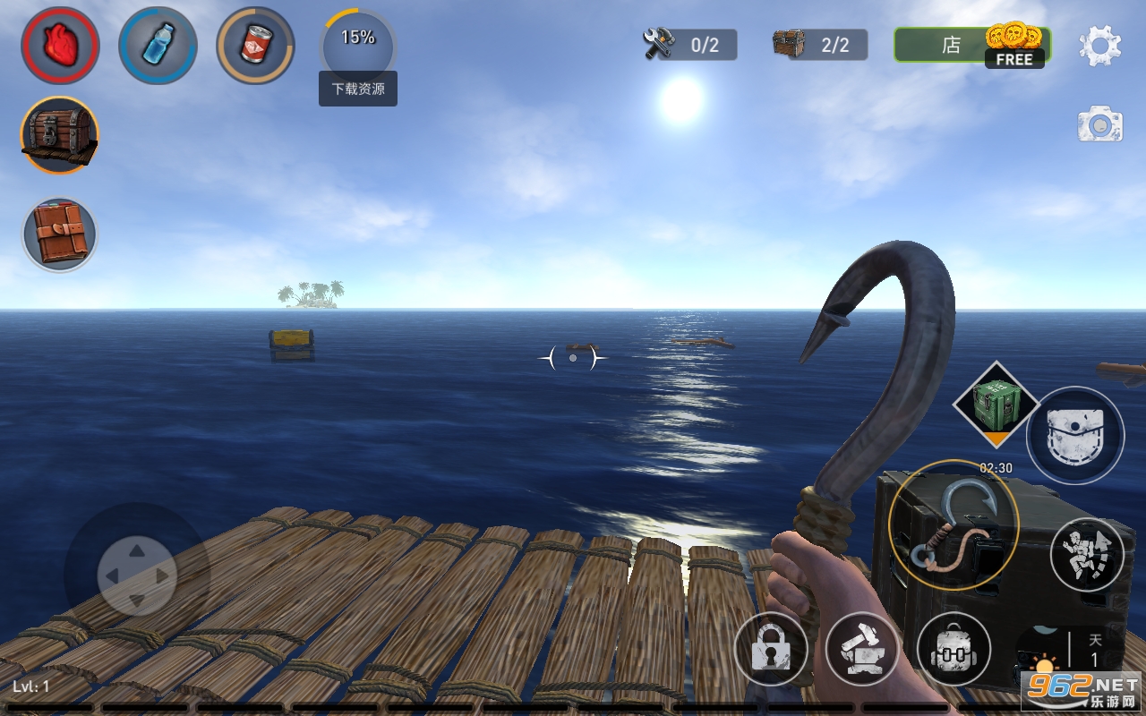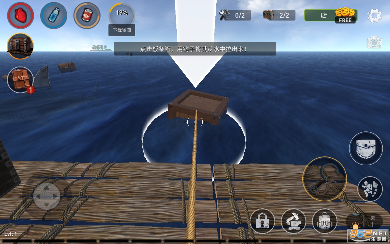 食物,水和物品是幸存者游戏的关键要素。环顾四周,试着找到桶子,箱子,残骸和附近漂浮的其他东西。有一点运气,你可能会发现稀有物品和木筏免费升级,所以把钩子扔得更远!