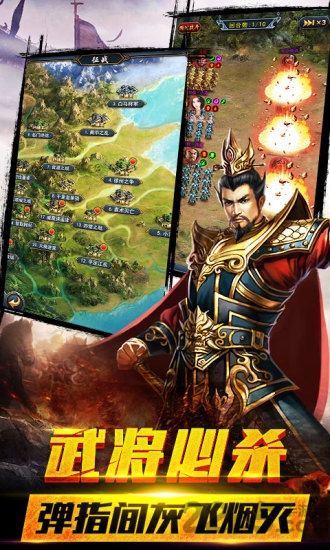 超大世界地图,实景高清画质,完美还原三国地图,山川河流、渡口关隘,郡县国都在游戏中均可一一找到;修筑城建,训练强将,内展军政,外延军事,掠取更多资源,攻下更多城池才能抢占先机,令自己时刻立于不败之地!