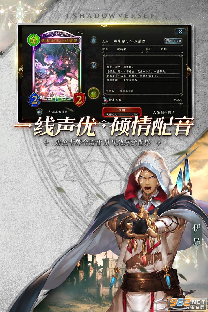 《影之诗》 (Shadowverse)是由日本Cygames公司开发的一款日式幻想题材卡牌对战手游。本游戏拥有丰富的战略、独特的进化系统、强竞技性的玩法、华丽的卡牌立绘、上百位超人气声优及原汁原味的日式幻想故事,让玩家在畅快对战同时,在日式幻想大世界中尽享视觉的饕鬄盛宴。