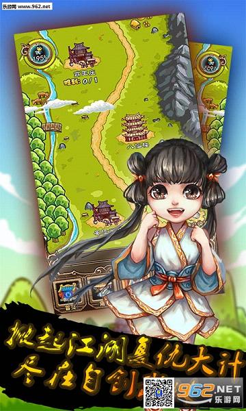 从此,光复门宗,自创属于自己的武林,便是武学的一生追求。游戏是一款集武侠、卡牌、闯关等为一体的手游,游戏通过装备强化,增加出阵队伍还赢得更高的关卡。