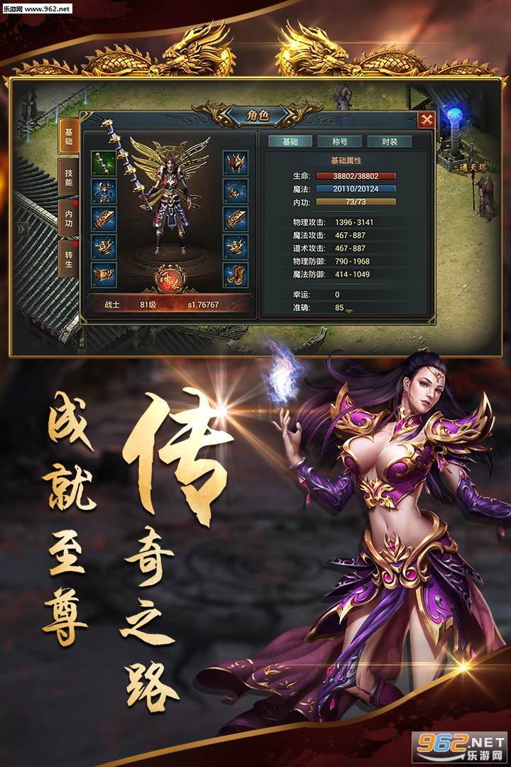 3、华丽的技能和优良的操作手感带来极致的战斗体验--千人混战震撼全屏神装! 专属套装霸气附体! 外观拉风属性爆炸!