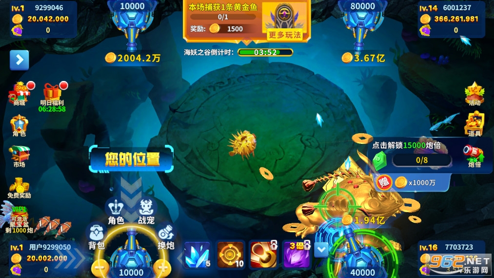 1、选择合适的捕鱼炮和倍数,根据自己现有金币量力而行;