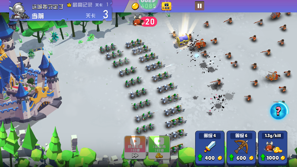 不断的加强士兵等级,提高攻防属性;