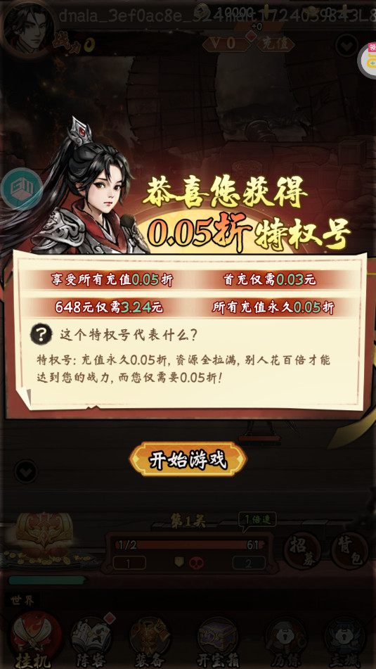 3.福利党前期可以游戏练吕布,小氪前期推荐可以从SSR中选择关羽,孙尚香等核心武将进行培养,大佬可直接开局进行满配阵容,更多搭配和推荐可以在世界频道聊天中跟大家多多交流,召唤活动中优先招募最划算出高级极品SSR等相关武将