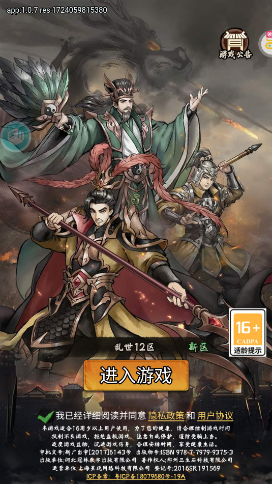 《三国将魂(0.1折定制开箱)》全新0.1折水墨开箱手游 ,游戏不肝不氪,挂机就能白嫖各类福利,高颜值立绘豪华配音,羁绊万千等你解锁!轻松打造不败军团,主公快来~