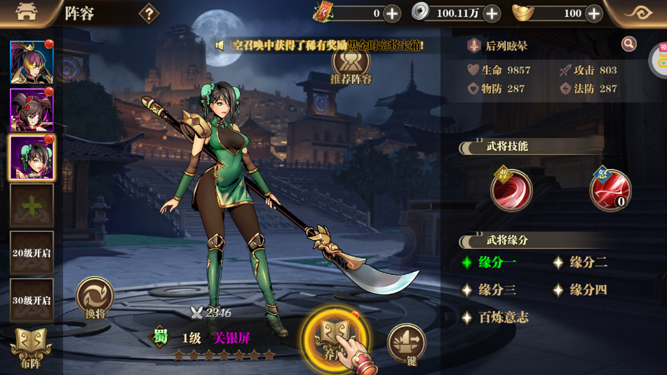 金色武将升到3星后,可以开启战魂系统。