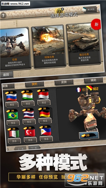 玩家可以挑选喜欢的机甲,凭借精湛的操作消灭敌人,感受震撼力十足的战斗乐趣!