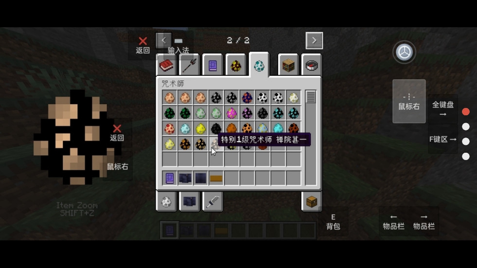 咒术回战模组:咒术模组添加了诸多在动漫和漫画中登场过的衣物,咒具咒物,咒术师、诅咒师和咒灵以及咒术。