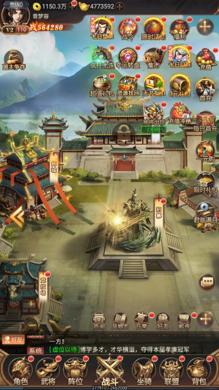 ★拜访武将,免费领取五星武将碎片;