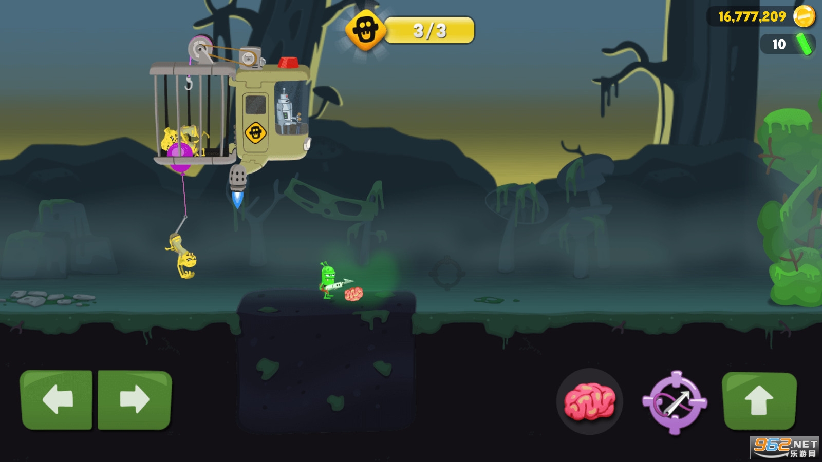 《僵尸榨汁机》是一款卡通风格的横版益智闯关游戏,游戏中在充满僵尸的地球上出现了外星人,这些外星人将在地球上不断的抓捕僵尸来进行榨汁,游戏的操作简单容易上手,通过脑子来吸引僵尸出现,同时躲开等候僵尸上钩,赶快下载体验吧!