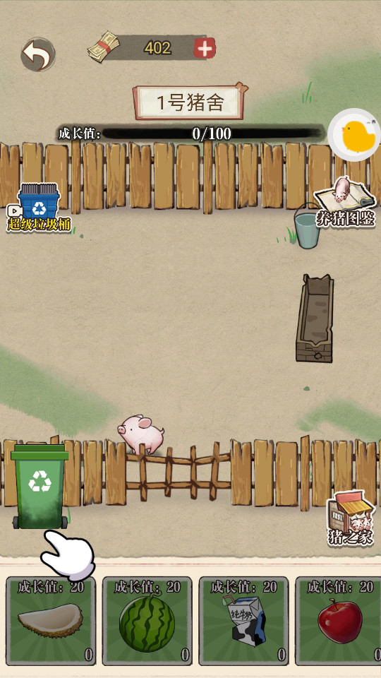 2、养殖动物:购买动物场,购买小鸡或者小猪等动物,喂养后可以获取金币;