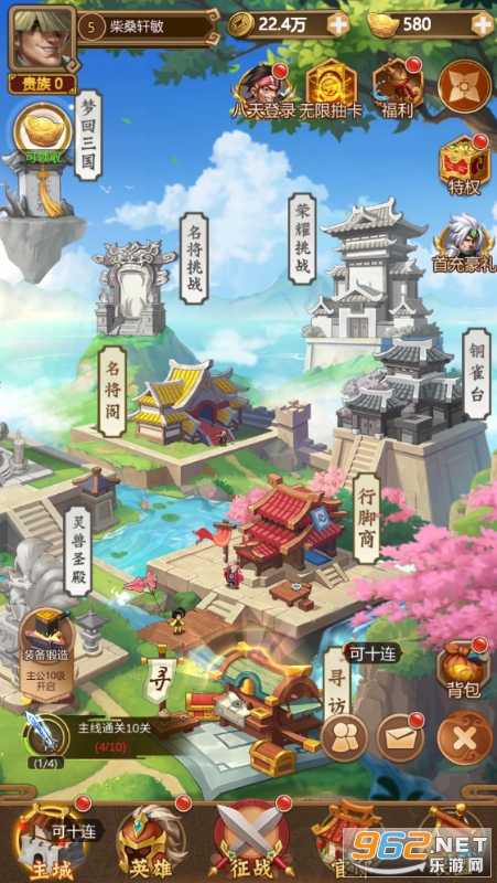 ★上线即送五星武将+无限连抽!抽到你心仪的武将为止!