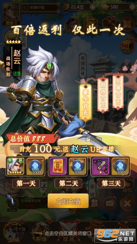 ★首充低至0.06元起,不但送赵云!更可领取持续3天奖励,总价值6888!