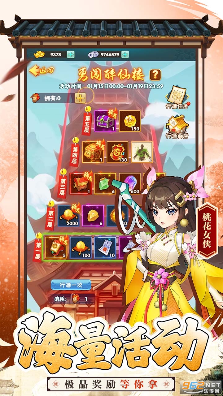 1、海量活动场景,放置式武侠冒险探索方式,全新武侠玩法和内容