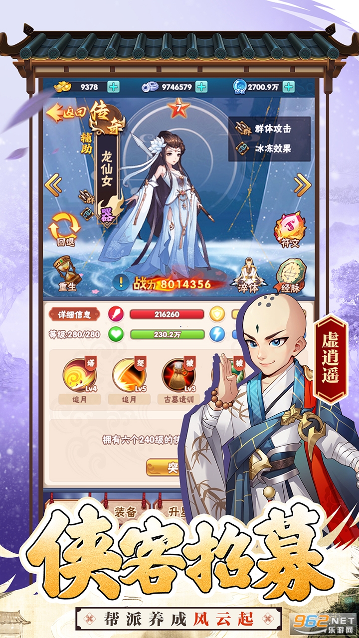 角色设定:游戏中有多种职业供玩家选择,包括武当、峨眉、丐帮等门派,每个门派都有独特的技能和属性。玩家可以根据自己的喜好和战斗风格选择合适的角色。