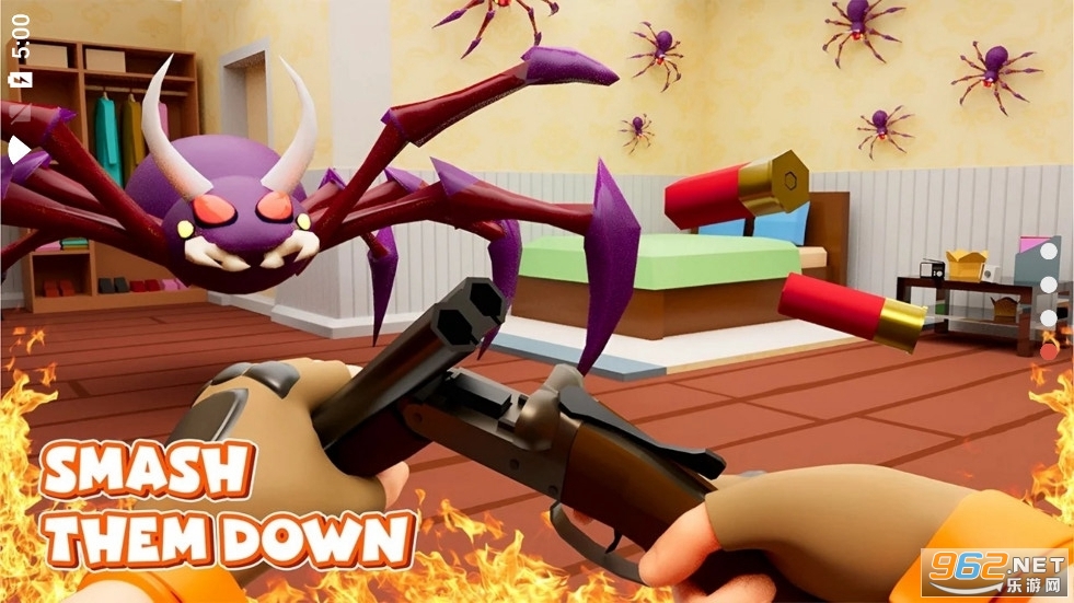 激动人心的动作:在房子里跑来跑去,在蜘蛛抓到你之前将它们压扁!