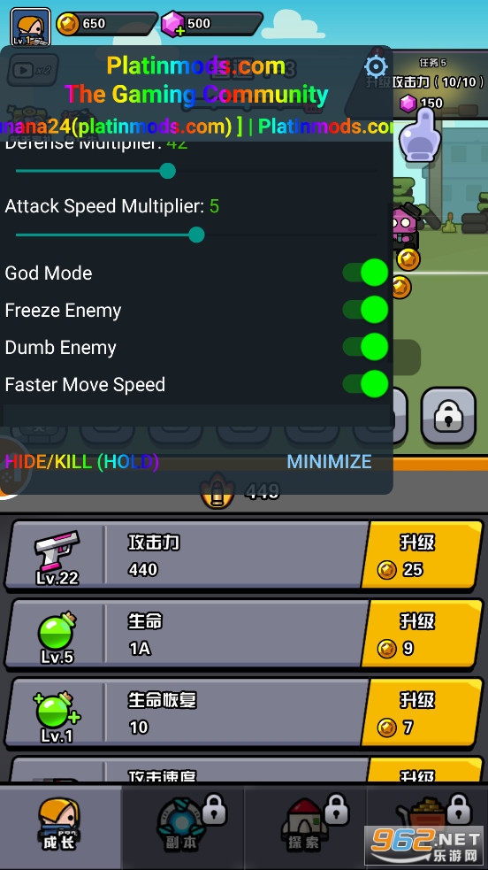 竖版放置战斗游戏,可以使用各种武器、技能去击败出现的各种敌人,小编为大家带来的是哒哒传奇破解版,内置菜单,可以自由开启各种作弊功能,喜欢的朋友可以下载试试。