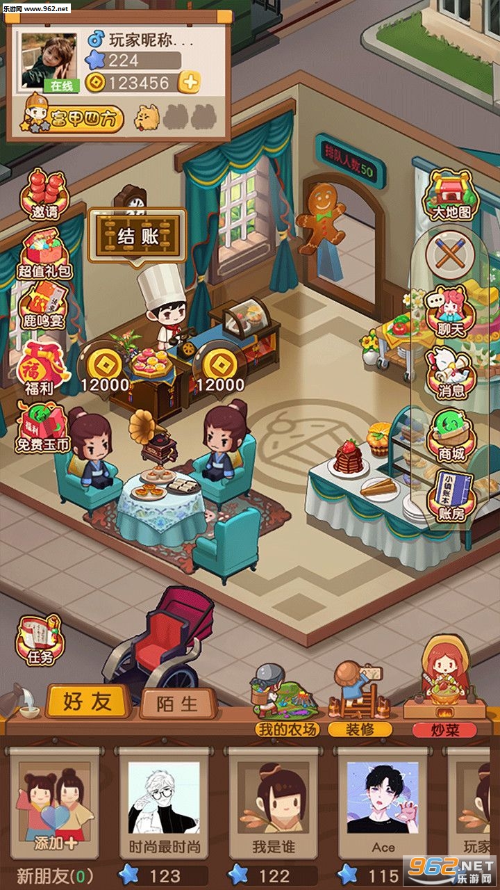 1、游戏围绕店铺装修、后厨、炒菜、农场、开炉灶等系统展开乐趣横生的游戏体验;