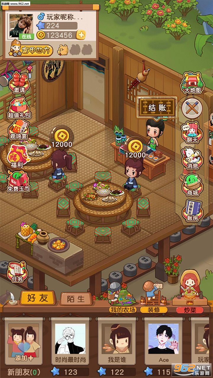 2、玩家将扮演店铺老板,围绕店铺装修、后厨、炒菜、农场、开炉灶等系统展开经营;