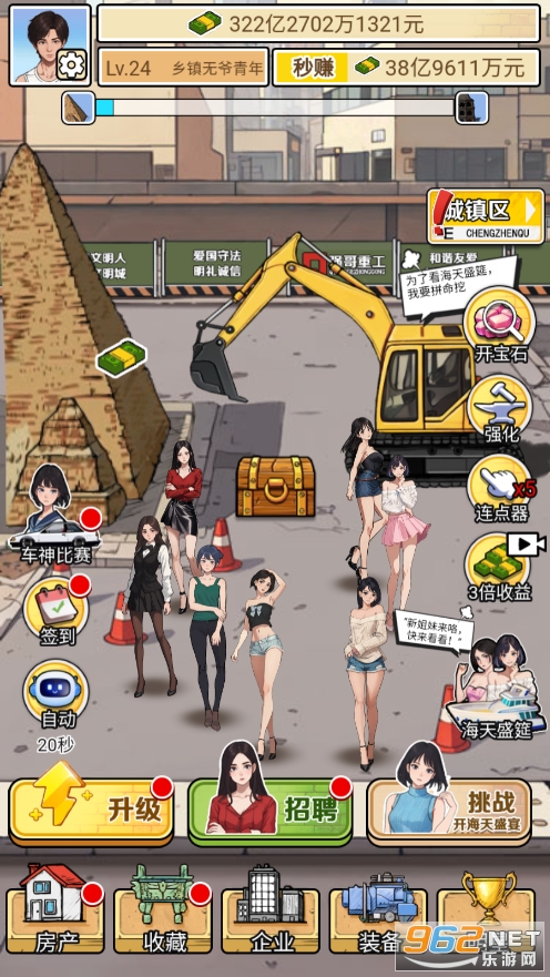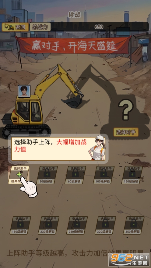 挖掘机逆袭记,在游戏中扮演挖掘机司机,在不断的努力中崭露头角,实现自己的逆袭之路,需要不断升级挖掘机,扩充自己的业务范围,获得更多的利润,丰富的任务系统和成就等你来玩~