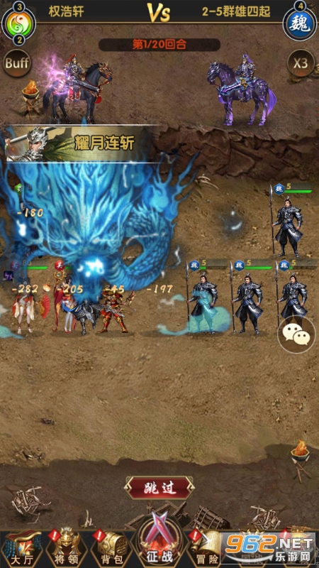 众多武将名士任你选择,不同的技能搭配方式,灵活应变击败所有的对手;