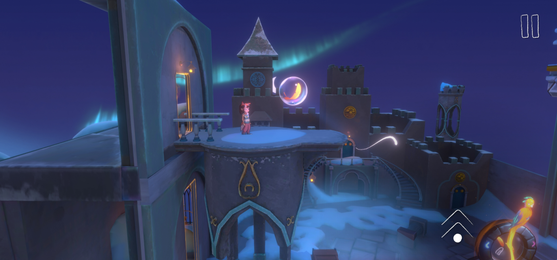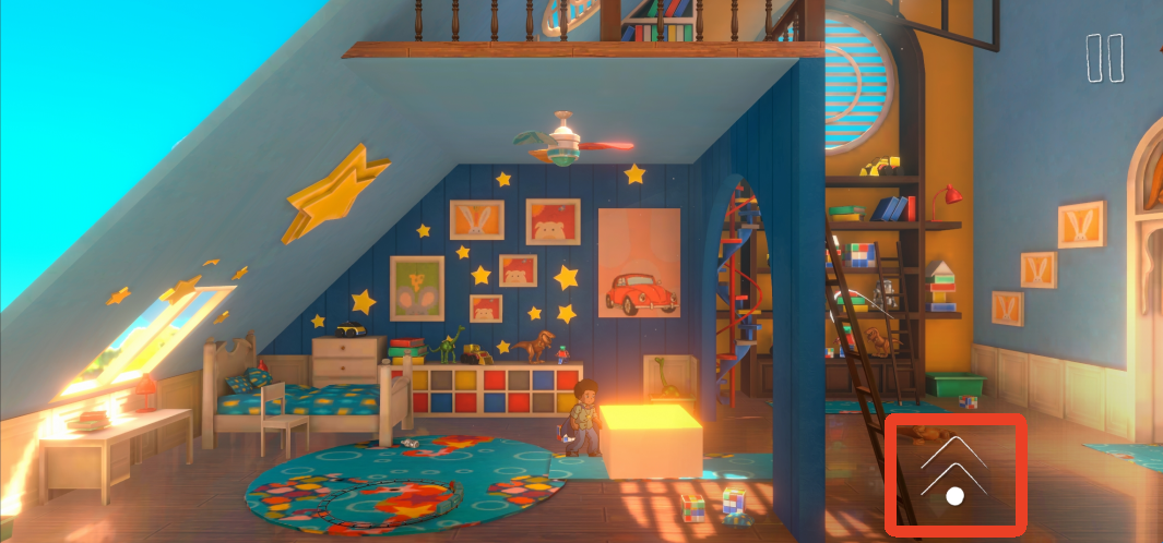 4、同样的也是跟着光走,遇到了需要跳跃的地方点击右下角往上的箭头就能跳跃障碍物,也可以跳过一些断掉的路。