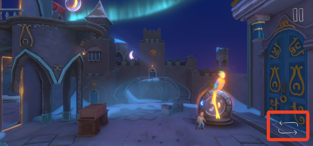 3、到达有石鸟的地方就点击右下角交换角色的按钮,切换到男生。