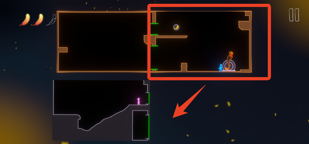 9、继续往前走收集金色羽毛,来到鸟的面前,会自动触发完成关卡的动画,这样我们就完成了第一关。第一关就是让大家熟悉一下操作,之后的关卡内会有更多有趣的机关解谜。