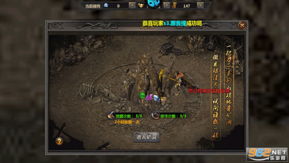 3、跨上一匹雄狮,从封魔谷,穿过千里狼烟最后来到沙巴克城下,准备开始攻城吧。