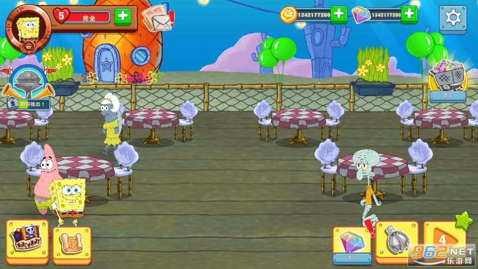 与蟹老板、派大星、章鱼哥、珊迪还有许多熟悉的面孔互动!