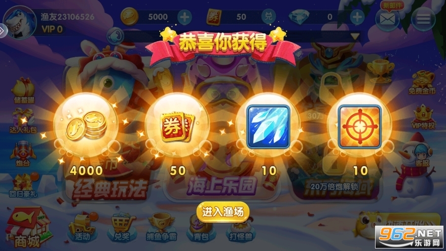 一款经典的捕鱼手游,游戏继承经典街机捕鱼玩法,多种游戏模式满足了不同类型捕鱼用户的需求,喜欢就来962下载体验吧!