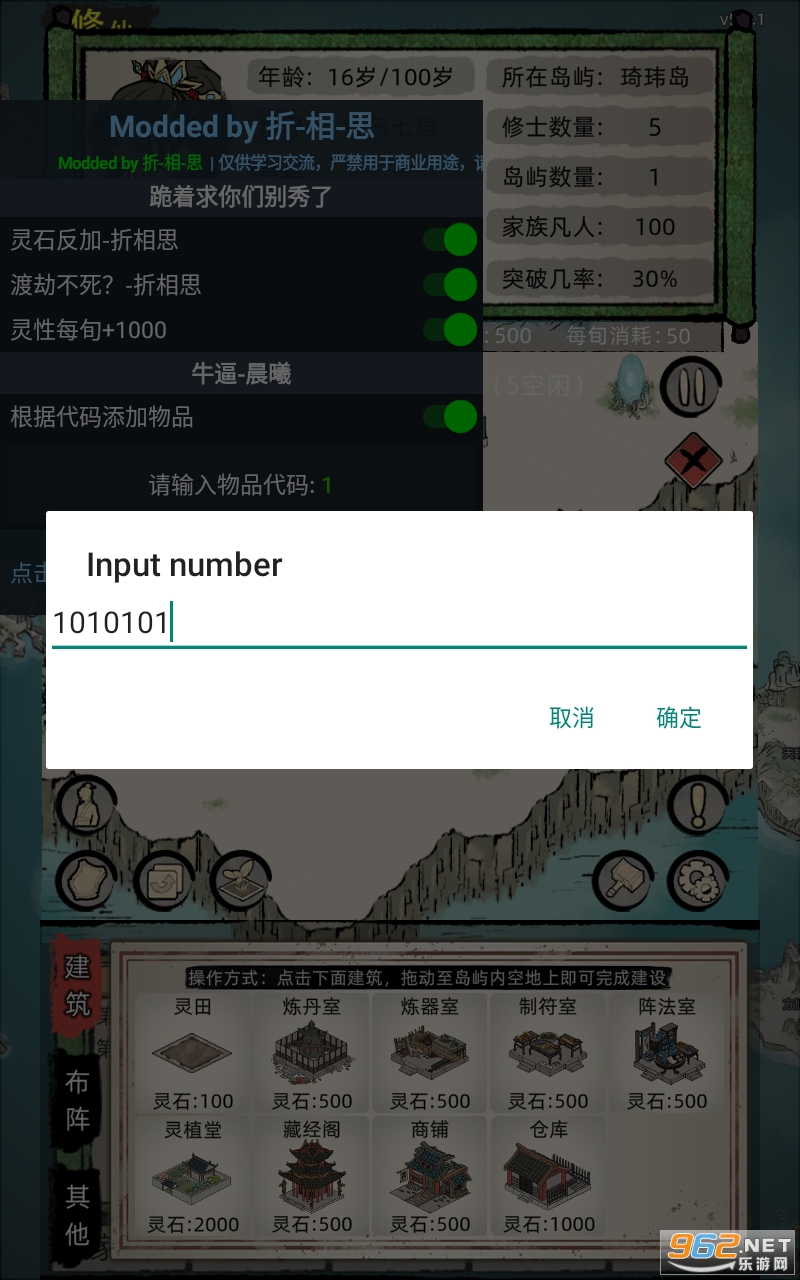6.优化建筑物拆除功能,部分建筑物拆除后会返还相应的道具,部分建筑物会返还少量灵石