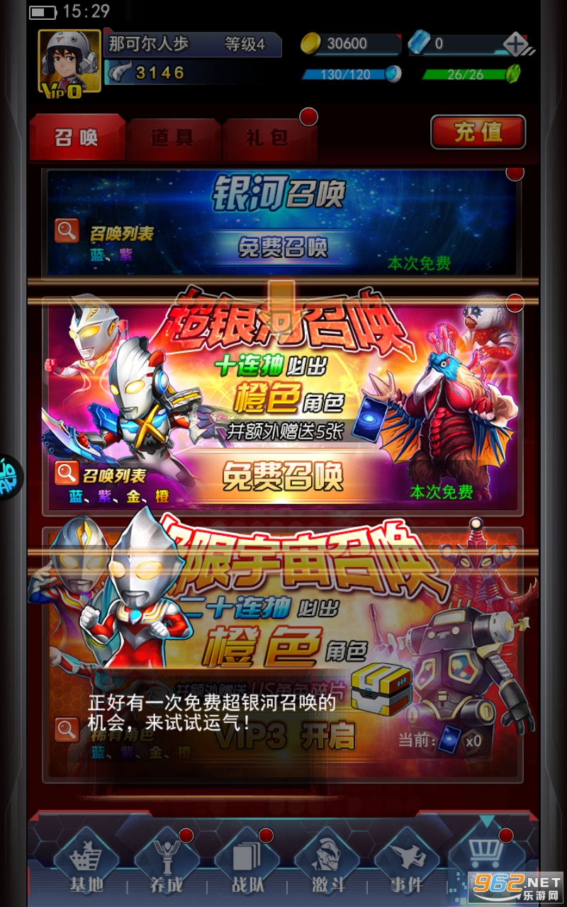 奥特曼新生代召唤这款游戏中新生代召唤是50级开启的。