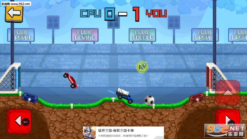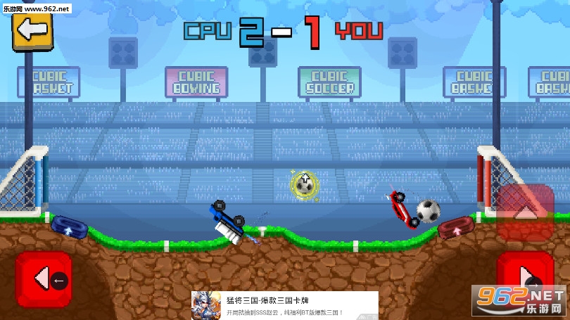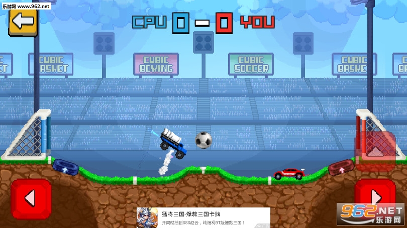 1、这里丰富的比赛都将开启,各种车辆在像素场景中,开始足球的比拼;