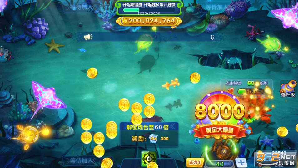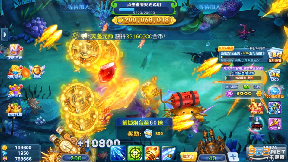 3、没有什么鱼类是一发激光枪不能解决的,能量集满后可以捕捉任何鱼。