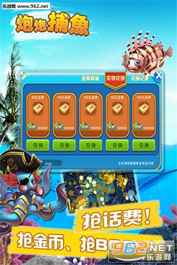 《炮炮捕鱼千炮版红包版》是一款捕鱼街机游戏,很好的继承了街机上的经典玩法和模式,只要你够厉害,就可以抓取金币等各种好礼,可以在商城换取话费,自行车、热水壶、吹风机以及公仔等豪华礼品,快来下载吧。