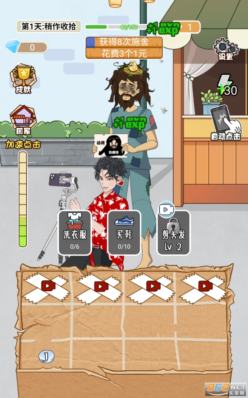玩家为乞丐(小帅),以乞讨为主贯穿整个游戏,通过乞讨引领游戏进程,邋遢不体面的形象,通过乞讨改变自我,从解决温饱开始,吃饱穿暖,交上女朋友,用上手机有代步的自行车。