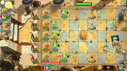 2、把能量豆放在豌豆身上发射更多的豌豆。