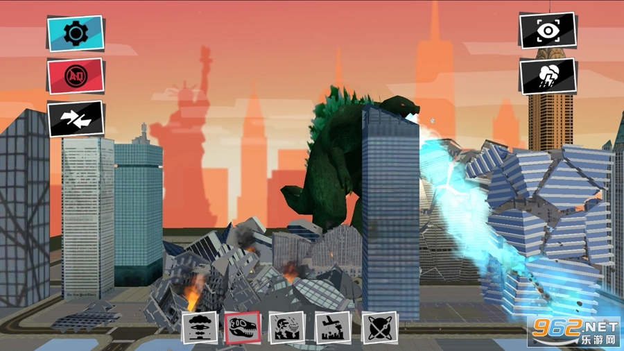 趣味的破坏游戏,玩家将使用各种各样的武器来摧毁城市大楼,比如陨石、炸弹、导弹、激光、哥斯拉、黑洞等等,可以自由的选择武器去使用,游戏已修改不用看广告获得奖励,轻松体验。