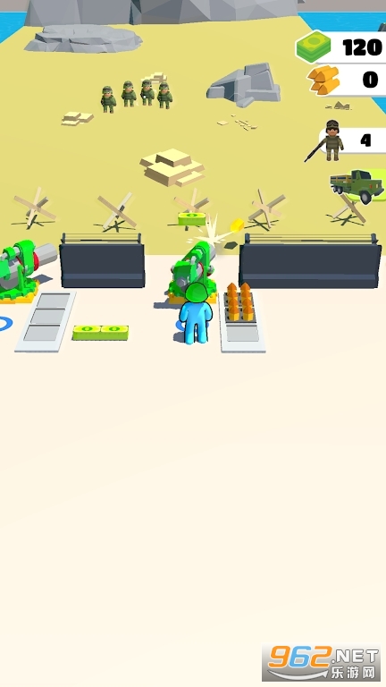 通过收集材料来生产大炮弹药并炸开敌人,以对抗突袭的军队!